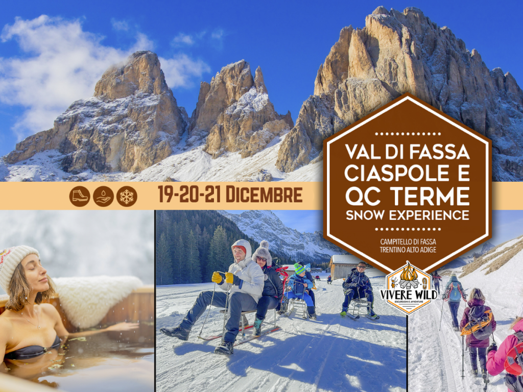 Non perderti tre giorni di pura magia e divertimento selvaggio tra ciaspolate, panorami dolomitici, paesini ladini e le terme più esclusive del Trentino!