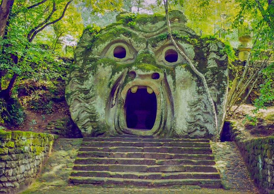 - Esplorazione del Sacro Bosco di Bomarzo, il leggendario Parco dei Mostri: incarnazione degli ostacoli dell’amore tra il principe Vicino Orsini e la sua amata Giulia