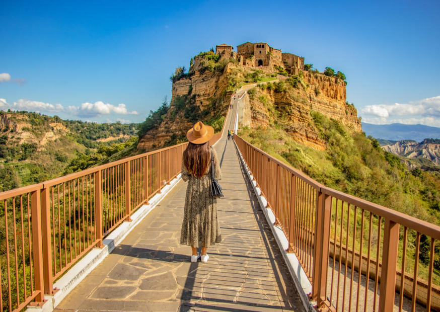 - Partenza in direzione Civita di Bagnoregio, la città che muore, con un trekking panoramico e selvaggio attraverso: Valle delle Argille, Cattedrale di Calanchi e Galleria nascosta sotto la città